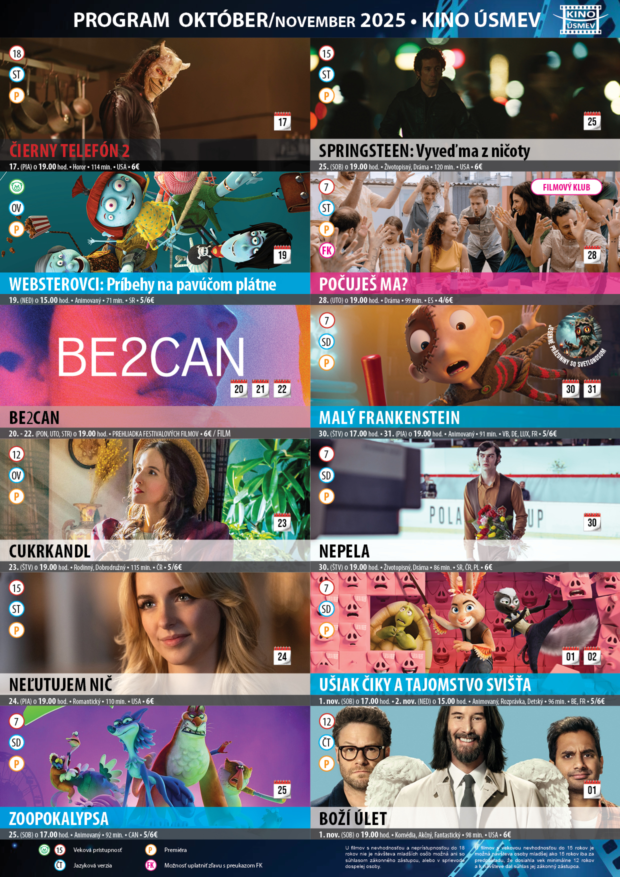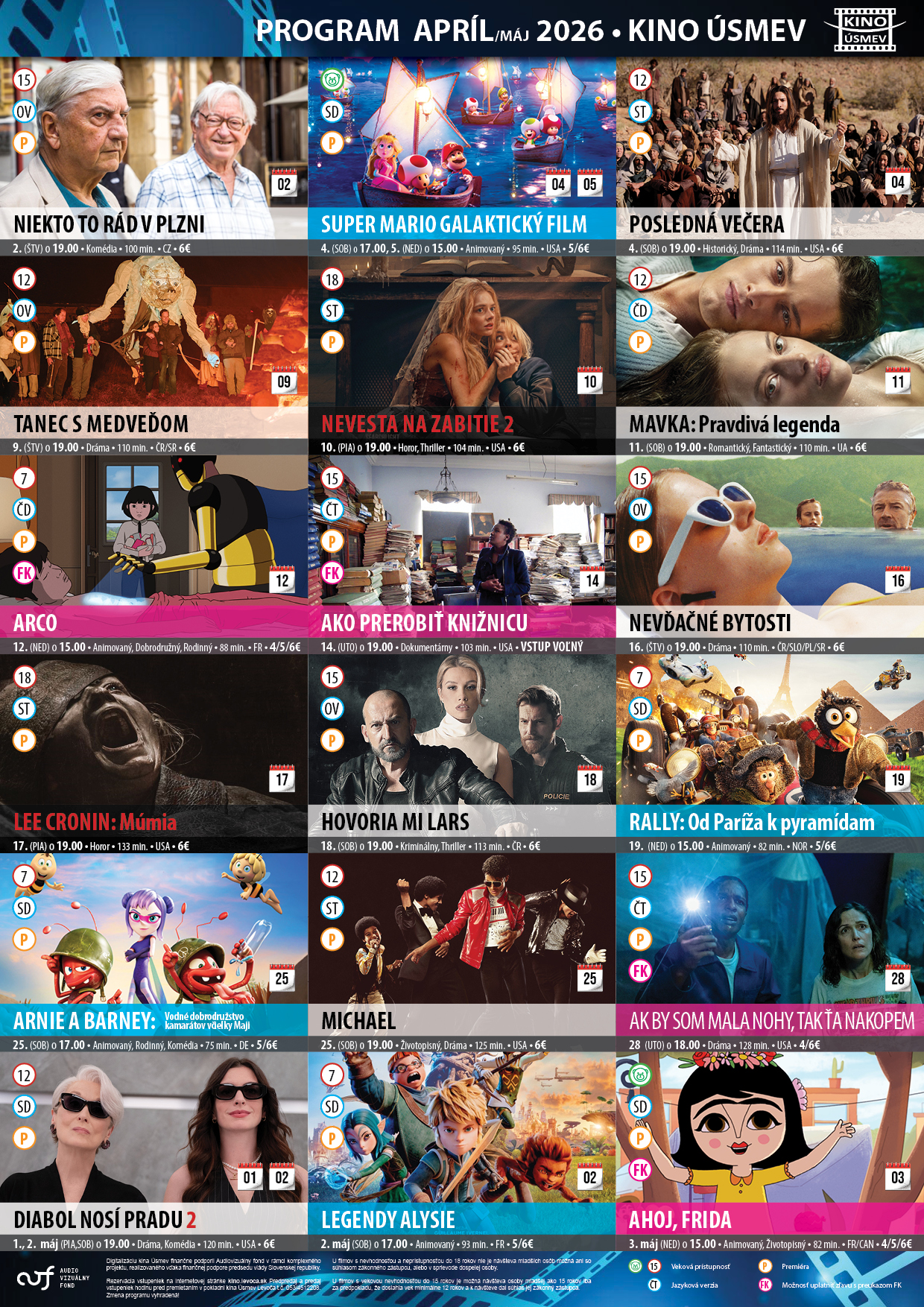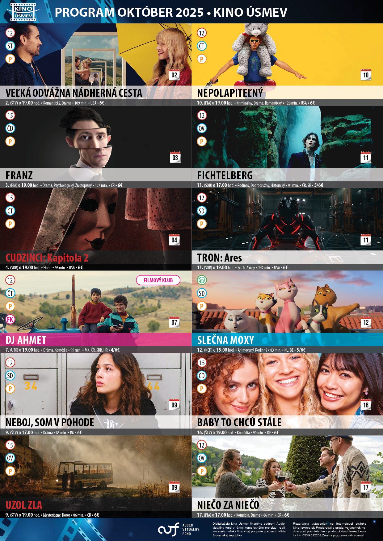 vstupeniek hodinu pred začiatkom predstavenia!Digitalizáciu kina Úsmev finančne podporil Audiovizuálny fond v rámci